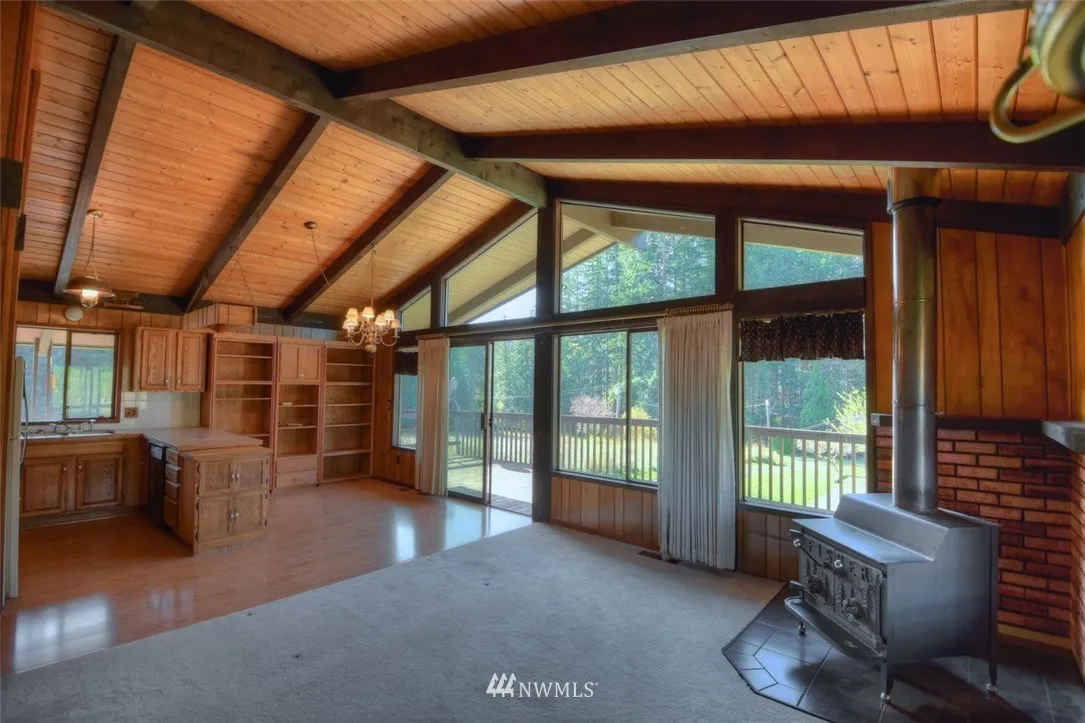 Cozy home privately situated on almost 40 acres complete with 32x36 barn, w/2 stalls and 8x36 chicken coop, 24x30 shop w/walk in cooler, 10x30 canning shed and extra storage, 36x24 three bay carport and add'l sheds around the mostly fenced and cross fenced property. Apple, pear and plum trees. Downstairs recently updated for extra space. Upstairs is cozy with woodstove and wall of windows that open to the large deck. Taxed in Ag classification. 2 water meters (1 for ea parcel)