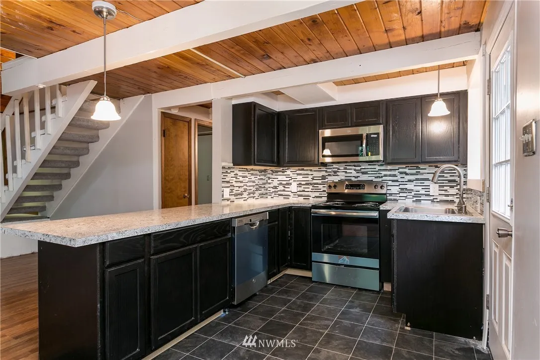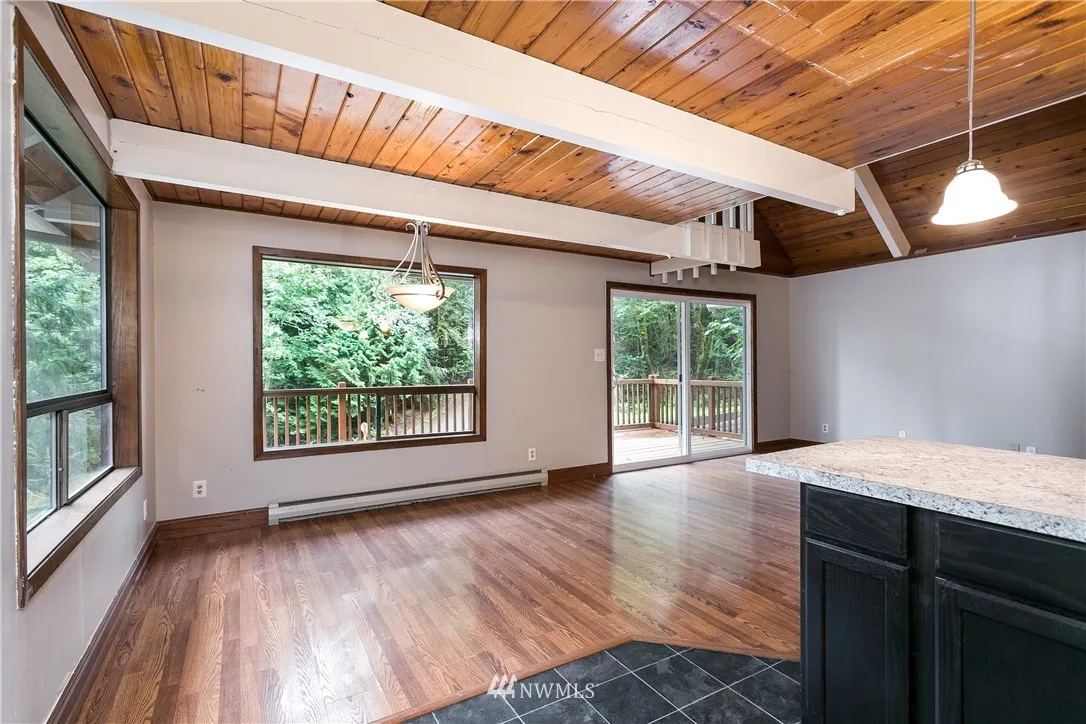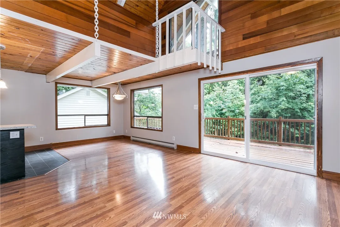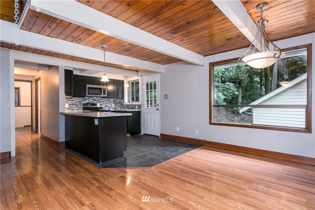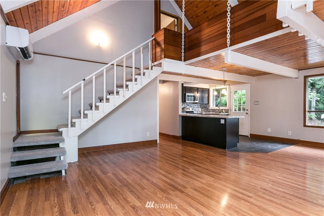 Cozy A-Frame home with tongue & groove ceilings, lofted upstairs & charm around every corner! Recent updates include a new roof, exterior paint, main water line, carpet, Mini-split, decks, stairs & kitchen appliances. The open concept layout, vaulted ceilings and large windows make this space feel large and bright! Local amenities include golf course, 5 Lake Whatcom beaches, parks, trails, 2 pools, library, gym & more!