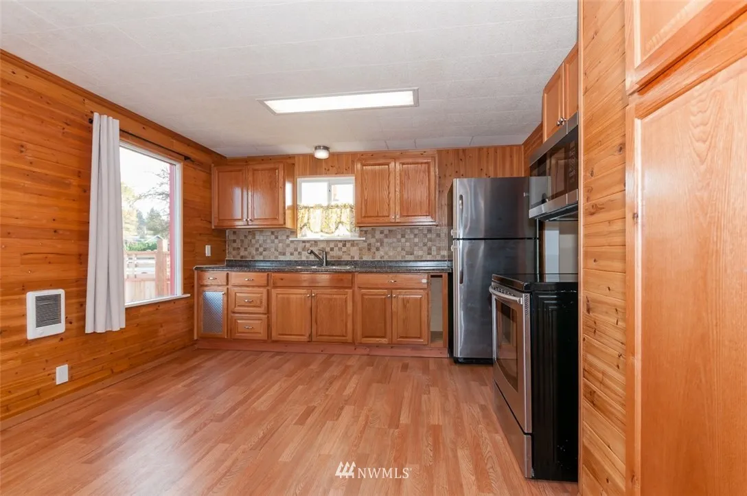 This 2 bed 1 bath single level home sits on a level lot w/ detached 1 car garage & fruit trees. Fenced yard has garden space, outdoor sitting area, & fruit trees. Recently updated, including instant on demand water heater. Key-less entry was intend for potential rental. Hardwood floors & cat scratch ceder walls look good with the double pane vinyl windows.