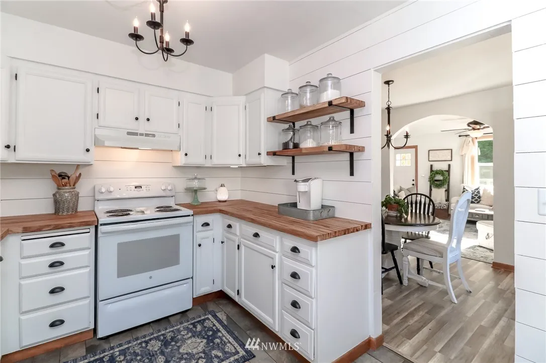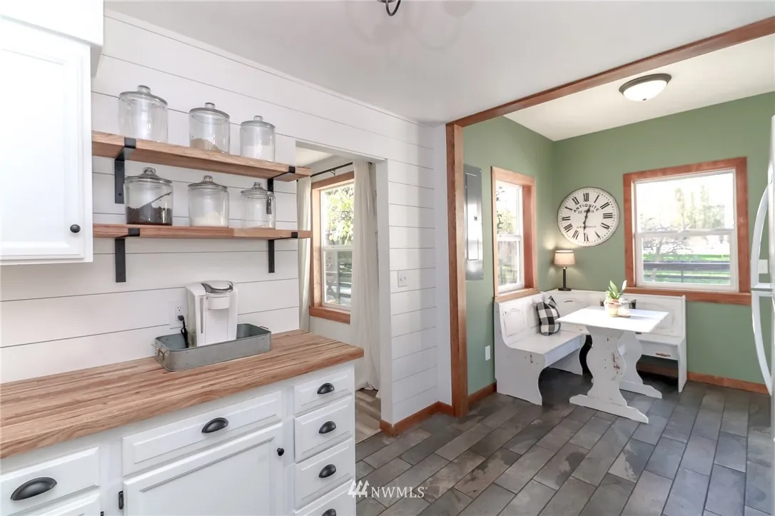 Picture-perfect Farm House! Nearly 5 acres of fenced pasture, barn w/insulated tack room, chicken coop, fruit trees, 2-car garage w/220 power & water heater. It's all here! Beautifully modern kitchen with butcher block counters & shiplap walls. Master w/vaulted ceilings and bath, +2 more bdrms (all beds have walk-ins). Den w/ barn door. Newer roof, some triple-pane windows, 3+ feet attic insulation. New paint in/out, new exterior doors, newly graveled drive. Covered parking for 5. Pre-Inspected.