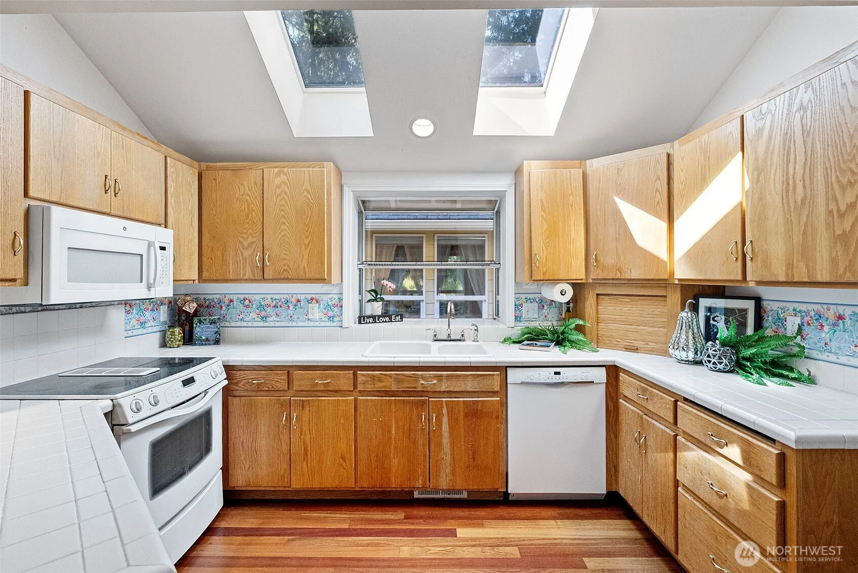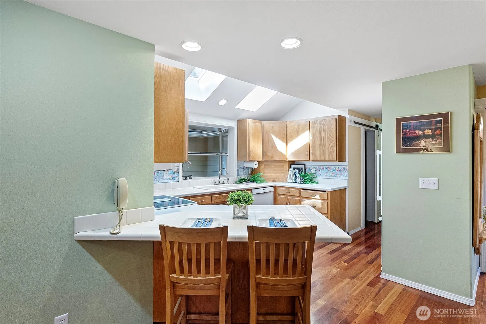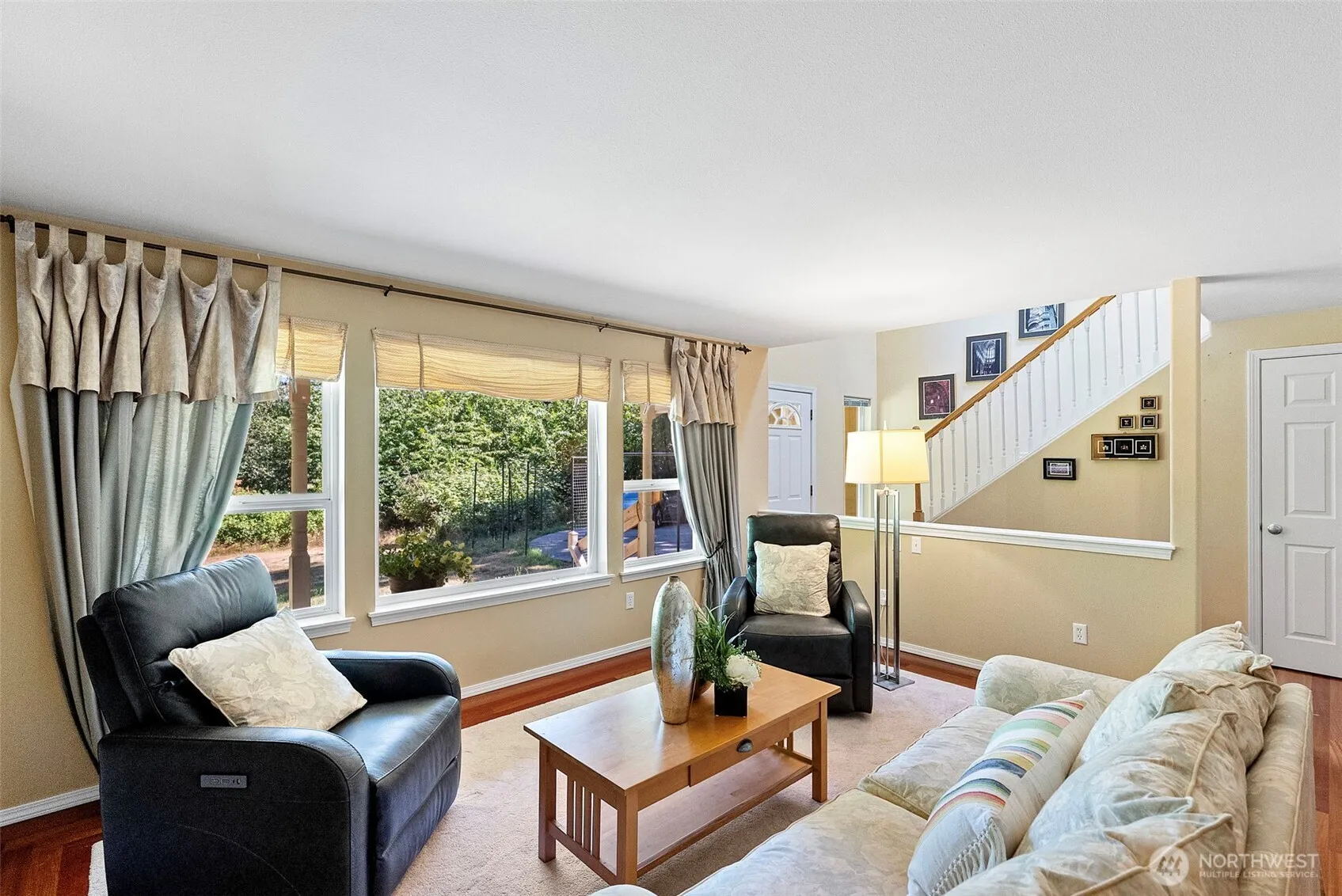 This amazing & unique home is awaiting your inspiration and creativity. You have the opportunity to make it shine. There is a lot of room for gathering in the living room, formal dining room, family room, & best of all French doors open to an architecturally designed wow-factor huge bonus room w/angled vaulted ceilings, beams, stone wood fireplace, office alcove, & details not to be missed. The kitchen overlooks the backyard w/sliders to the deck. Upstairs 2 bdrms could hold a king bed, for size comparison. The Primary is a delightful space w/ceiling angles & Pizzazz & private 3/4 bath & walk-in closet. A separate garage/shop adds an extra bonus of 942 sqft of space for hobbies, etc. This is definitely worth some sweat equity.