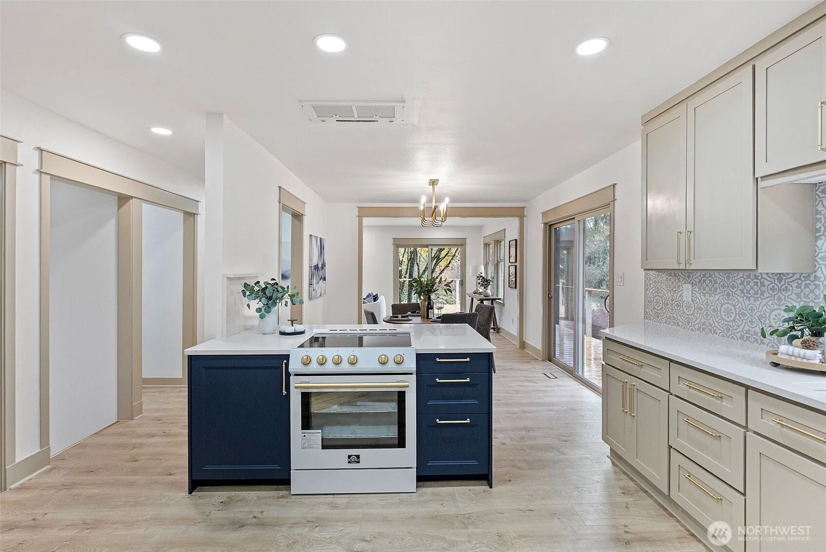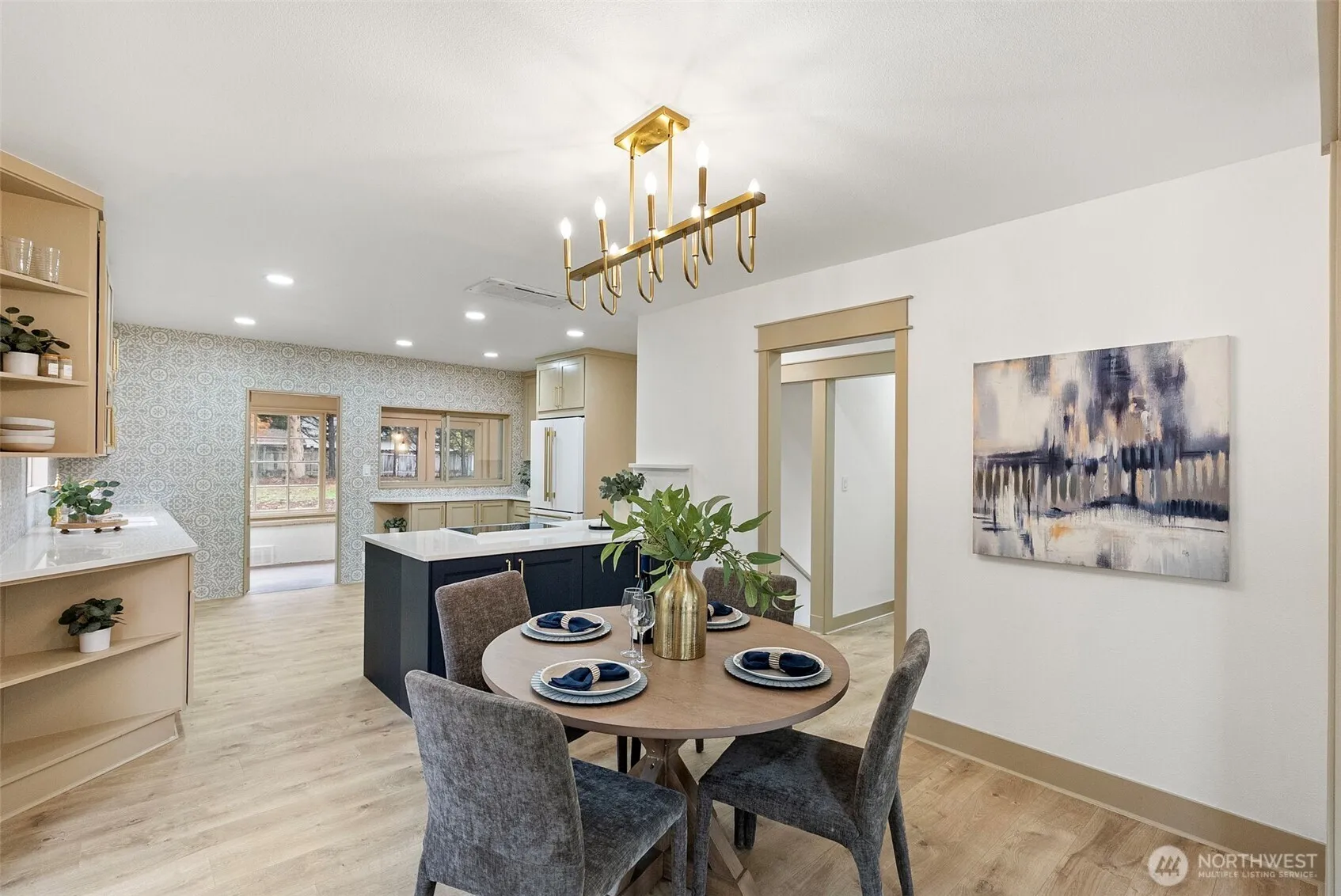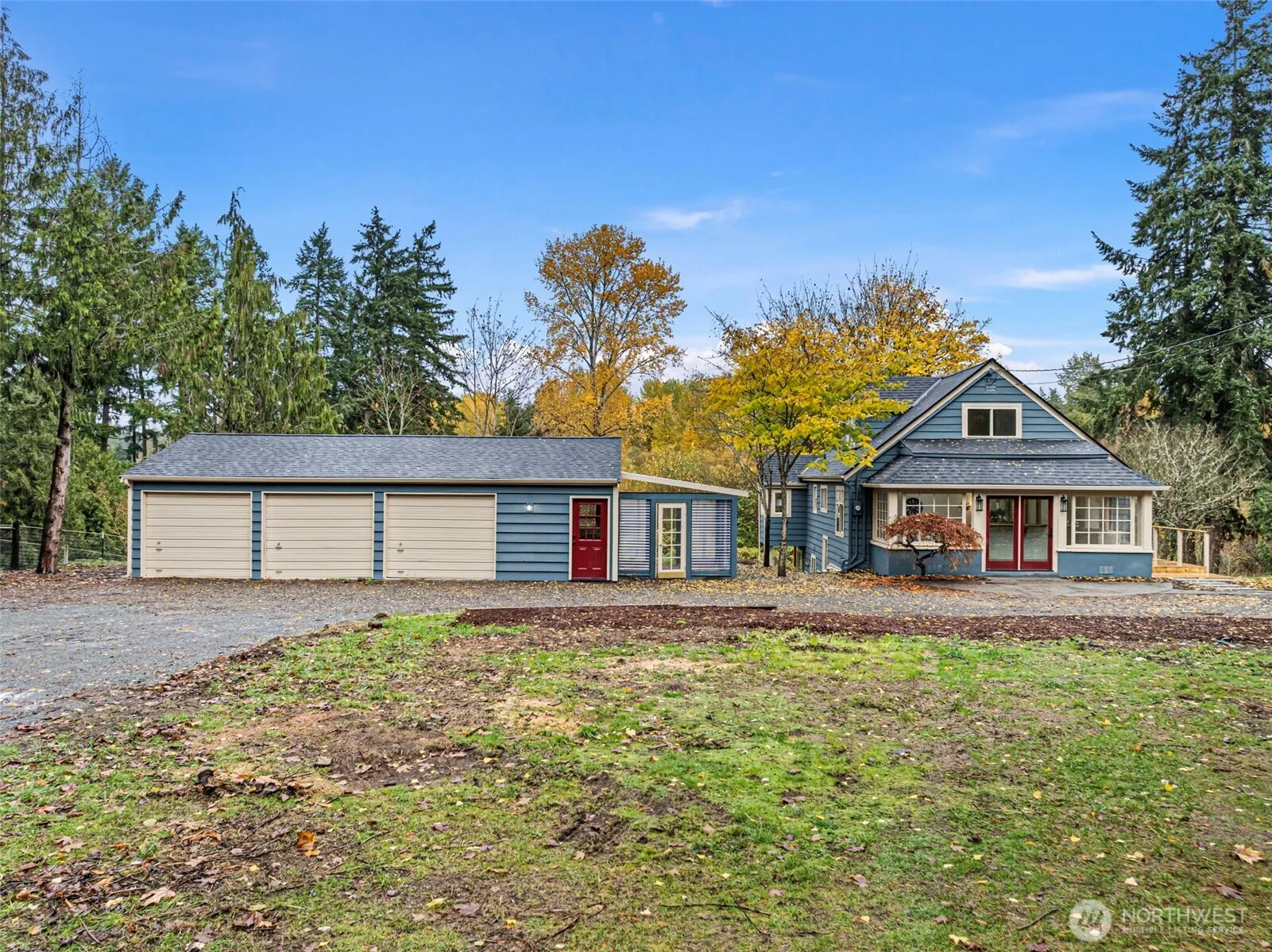Modern style meets timeless charm in this beautifully updated home. Enjoy a bright open layout featuring a stunning kitchen with two-tone cabinetry, gold hardware, quartz counters, and a statement island perfect for entertaining. Bedroom on the main floor as well as a spa-inspired bath with warm wood tones and sleek black fixtures. The finished basement adds extra living space with a stylish wet bar—ideal for game nights or guests. The spacious lot offers room to breathe with a large detached three-car garage, deck, and peaceful tree-lined setting. Move-in ready with designer finishes throughout!