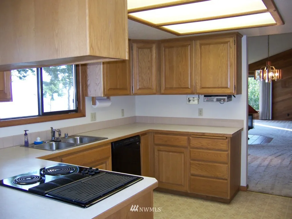 A dynamic view! Waterfront location for this sturdily crafted daylight basement home. Handsome woodwork inside and out. Designed for single level living upstairs: 2 beds, 2 ba, dining space, eat-in kitchen, living room with deck all feasting on the view. Downstairs has a separate entrance into huge den/second living room complete with view of Protection Island, fireplace, 2 bedrooms, stubbed for kitchen and utility room. 3 shops. Excellent choice for multi-generational household or in-home care.