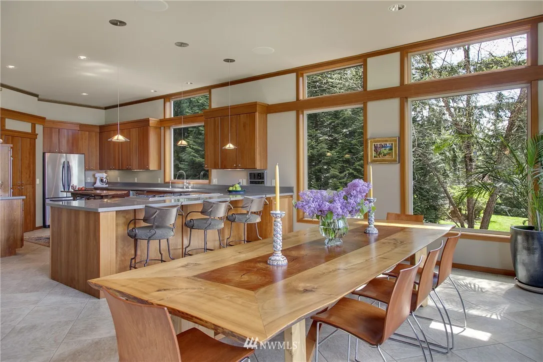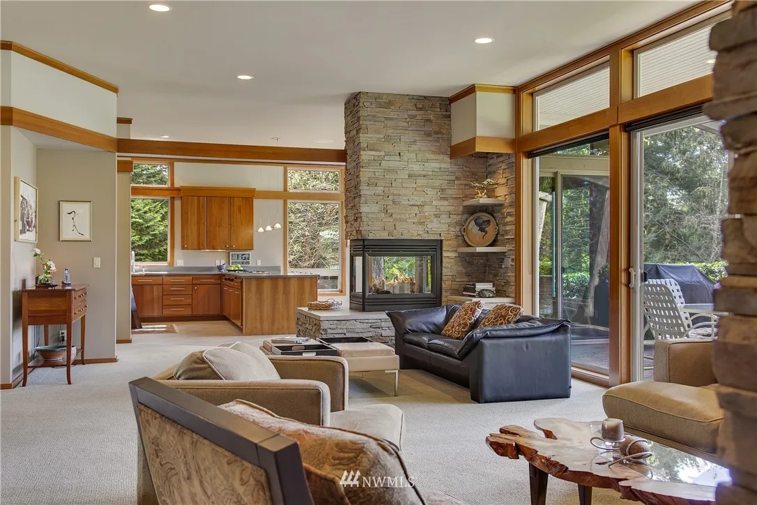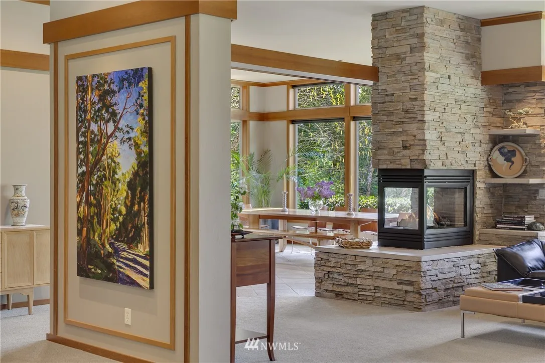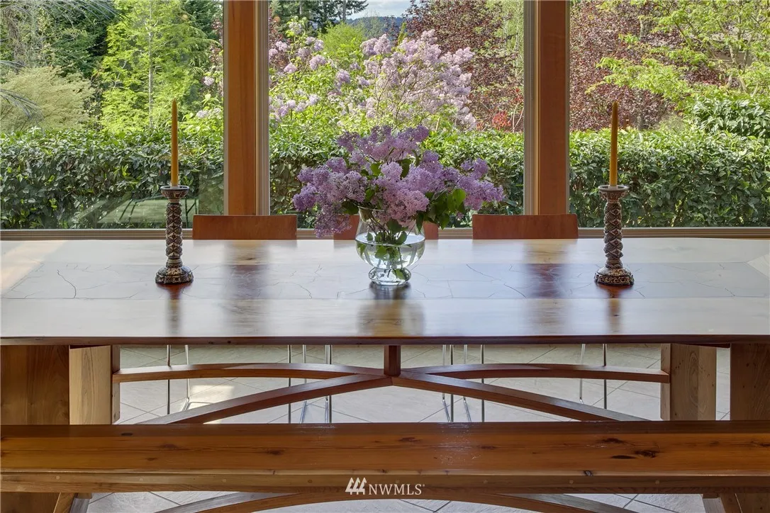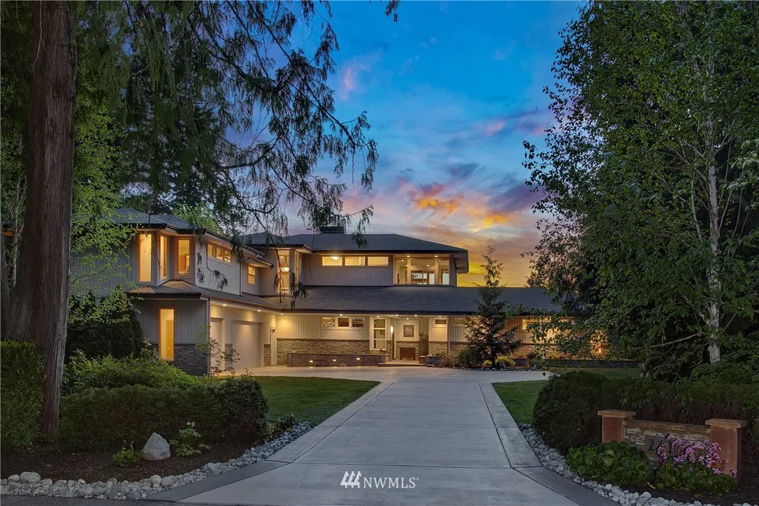 On the western ridge of the Sammamish Plateau with Olympic Mtn views above Lake Sammamish, Seven Cedars offers a unique NW lifestyle, a synergy of site & structure. Artistically executed design & near-industrial construction represent the principles of Frank Lloyd Wright's Prairie style while honoring this lush one acre site. Three autonomous suites couple with ingeniously conceived multi-purpose greatroom spaces to create a luxurious & stately residence full of warmth & singularly inviting.