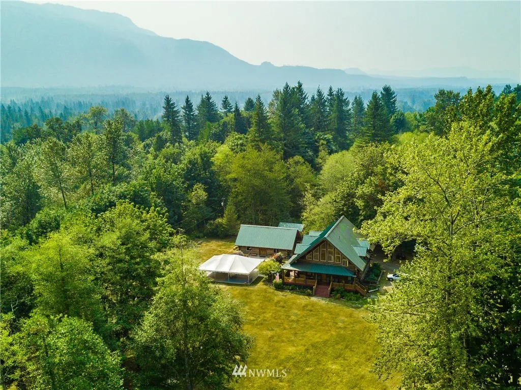 Unique, beautiful 12 bedroom LOG Lodge, with all own bathrooms on almost 10 view acres. Natural Setting, Mt:views, lawns & woods. Trails to 260' waterfall & Lake. Private estate, secluded yet 1 hour from Seattle. Enjoy investment income, plus use for personal vacations w/family/friends. A profitable retreat with same owners 20 years. 12 years as B&B Inn, now a Group Vacation Rental and Private Event Facility. Continue as such or Corporate Guest house, Wellness center etc.