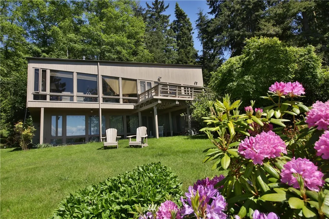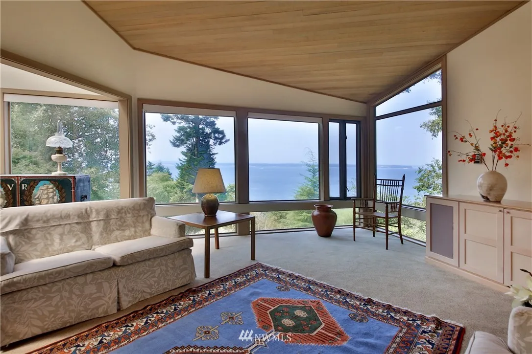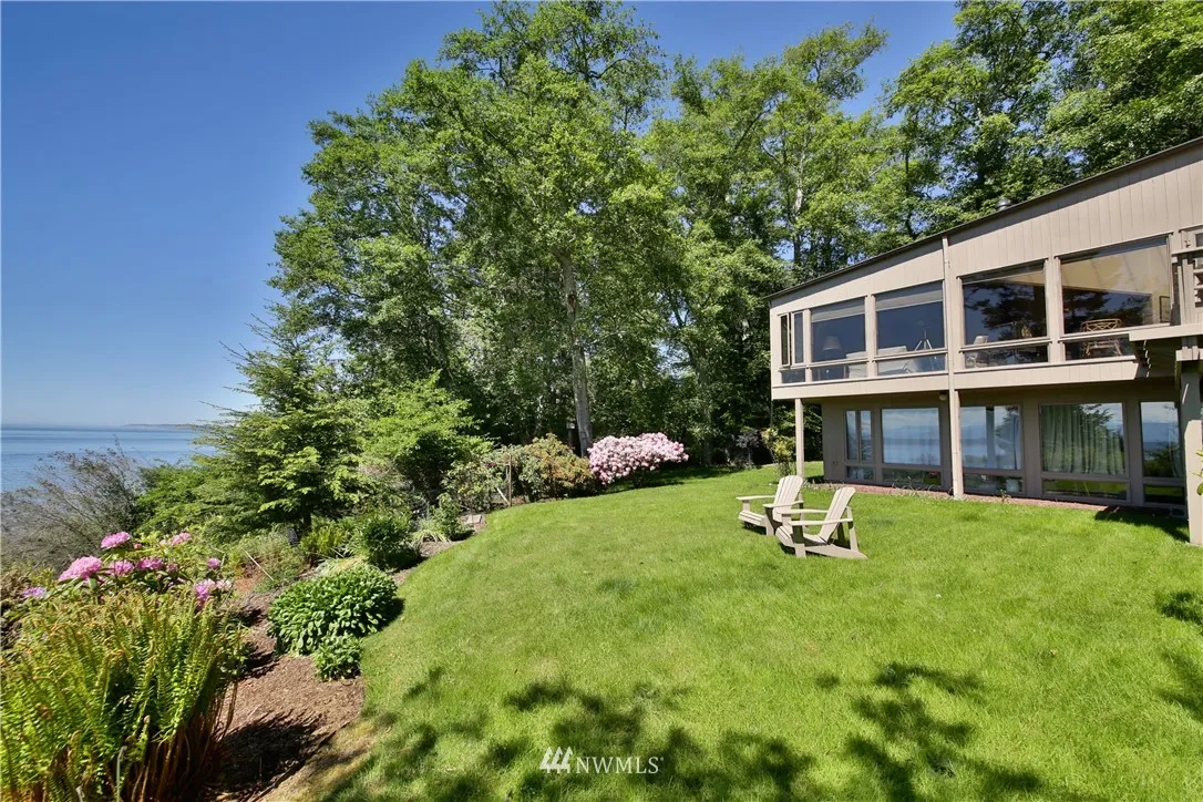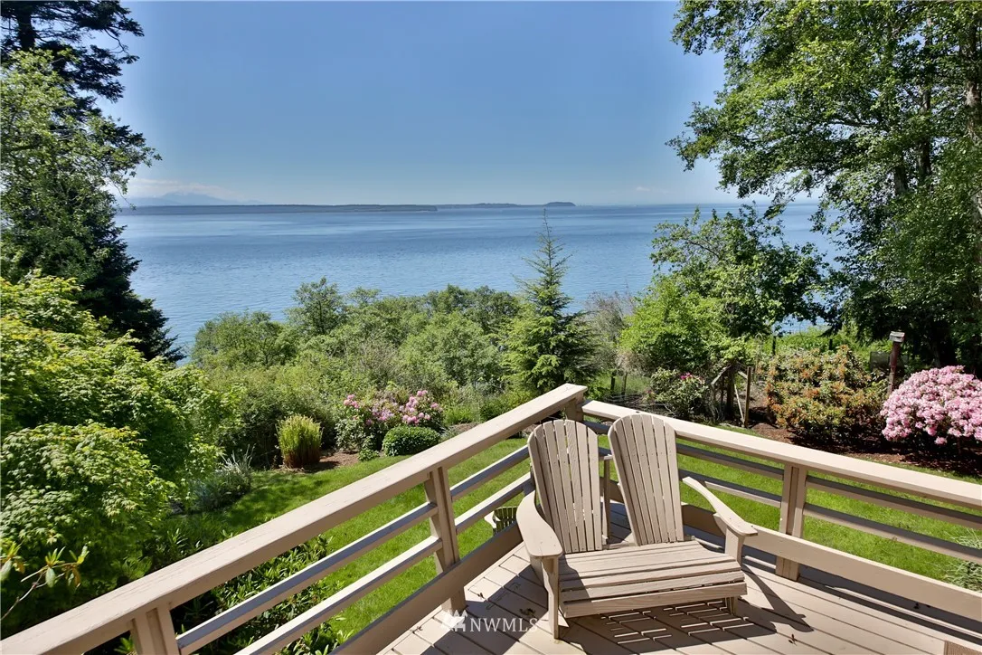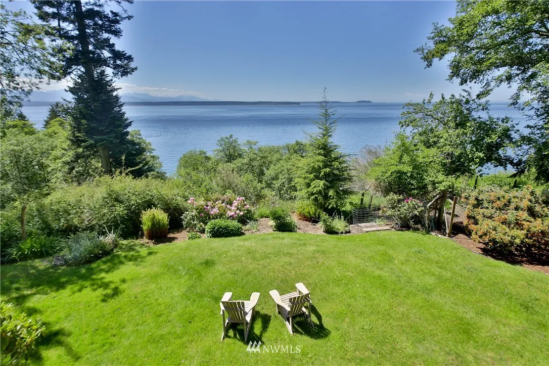 Privacy among 5+/- wooded acres with grand views of shipping lanes, Olympic mountains and Puget Sound. Watch the ships pass and the sunsets from this well-cared for 2-bedroom NW Contemporary home. Well-lit daylight basement with den and additional storage room. Tidy garden is just the right size for care and the wooded acreage brings many native flora and fauna to grand entry via long driveway. European style kitchen with granite counter tops and washer/dryer. Come see this grand estate today!