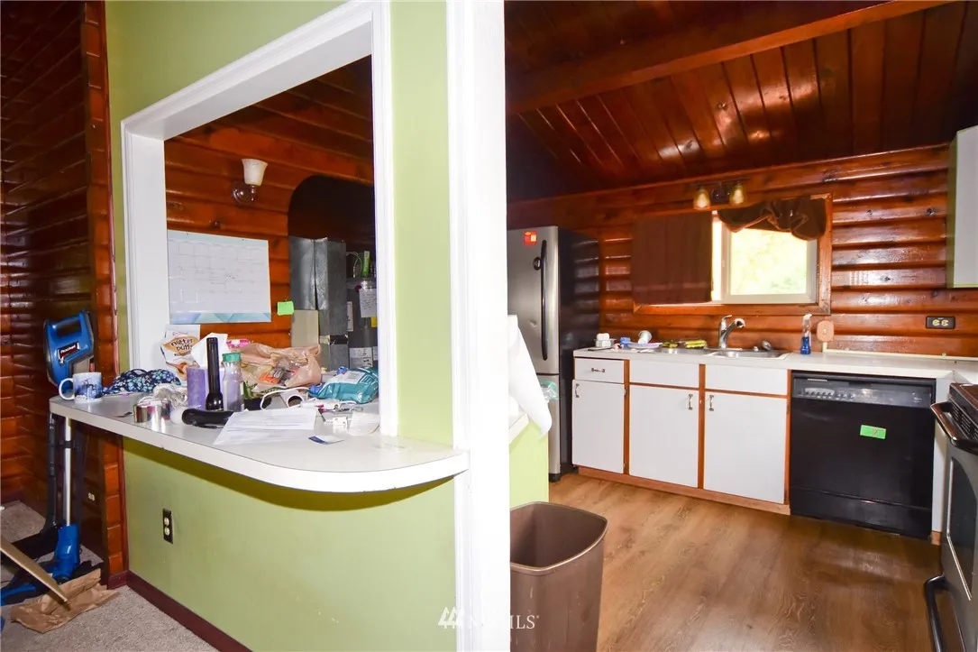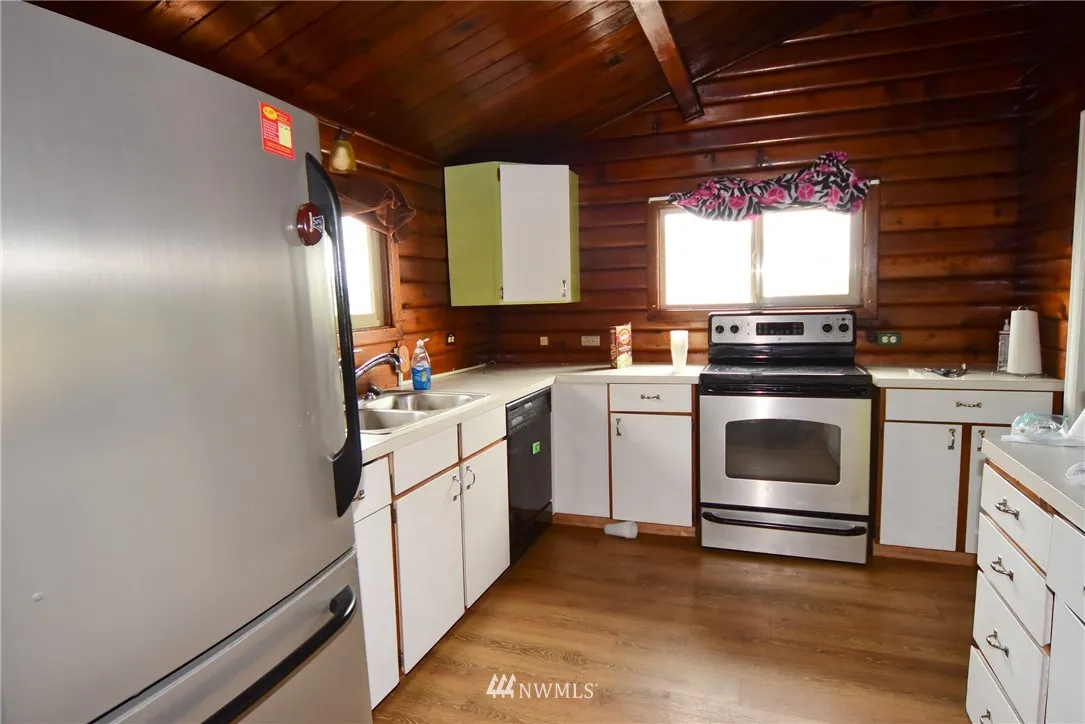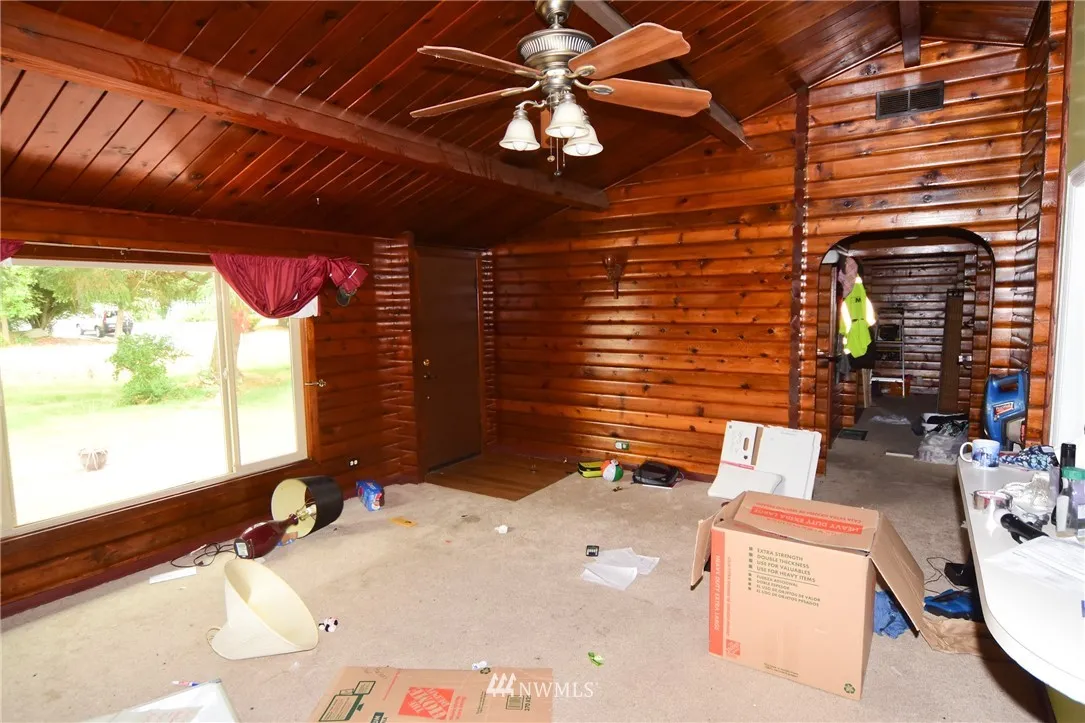 Fix me up! Panabode Log Cabin with 1056 Square feet on nearly half acre lot in serene Oak Harbor. 3 bedrooms, open floor plan. This cutie needs some TLC, has the potential to be absolutely charming. Fenced yard, 3 outbuildings! Entertainment sized deck in front and out back. Awesome neighborhood amenities include Clubhouse, pool, dock and beach access.