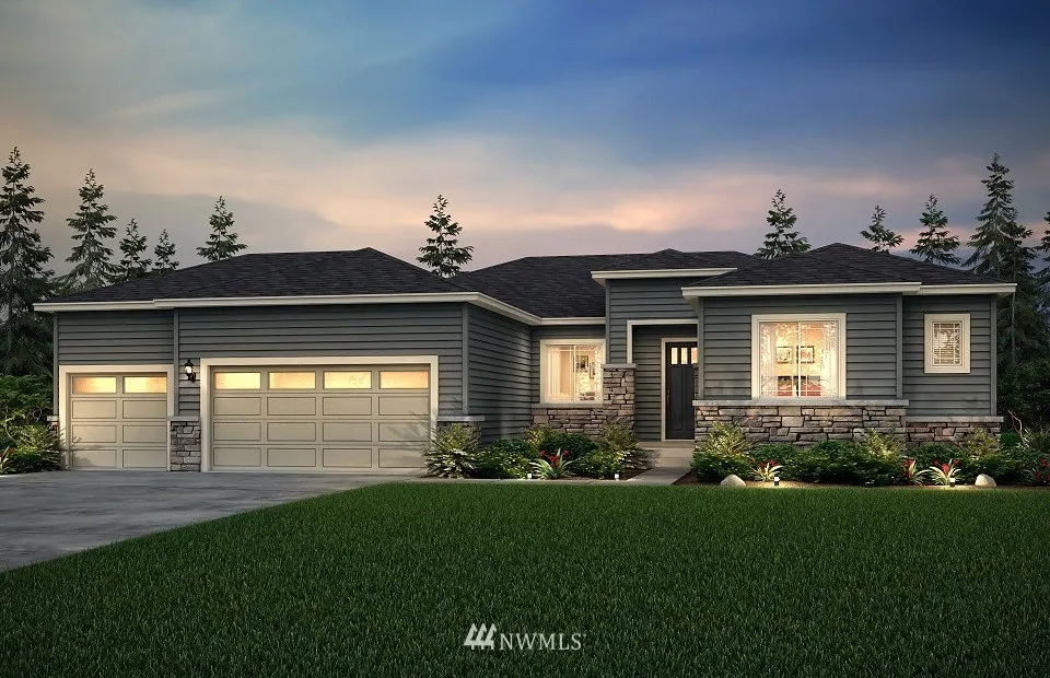 Rambler on acre+! This beautiful open concept rambler has what you are looking for, and nothing more! Great room is all open to kitchen and dining, with den and two additional bedrooms. Island kitchen with huge walk-in pantry and oversized laundry room that can accommodate a sink too. Covered patio with outdoor fireplace for chilly evenings. Guest bedrooms share Jack and Jill bath for privacy, plus a 1/2 bath. Owner's suite with walk-in as big as most bedrooms!! Pick your colors in our studio!